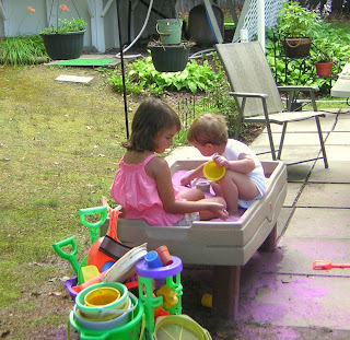 We have a small, plastic sandbox. They like to get in it, though. Maybe I should make them a real one.